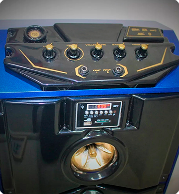 Frente de equipo de sonido impreso sobre alto impacto previamente termoformado.