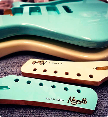 Así lucen las guitarras del luthier Sergio Nigrelli luego de aplicar nuestras calcos al agua tradicionales.