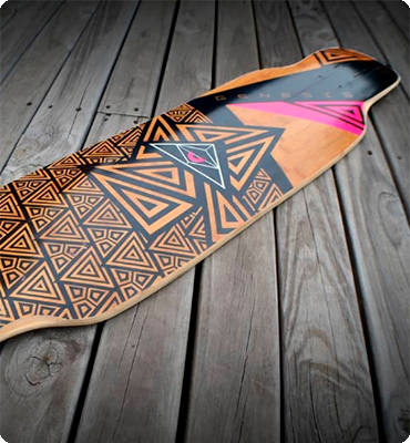 Este deck de longboard de 120 cm fue impreso directamente sobre la madera.